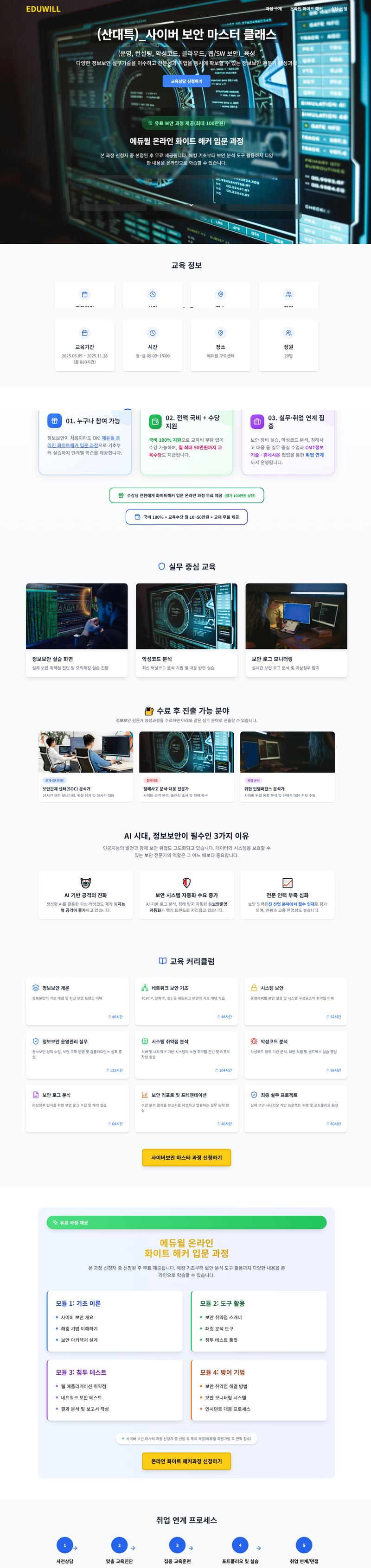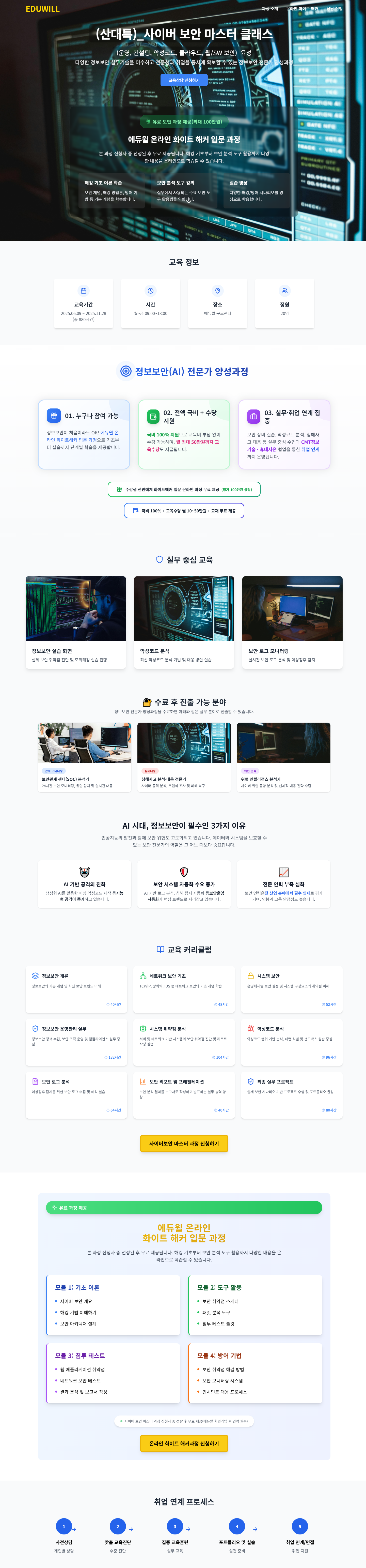 정보보안이 처음이라도 OK! 에듀윌 온라인 화이트해커 입문 과정으로 기초부터 실습까지 단계별 학습을 제공합니다.