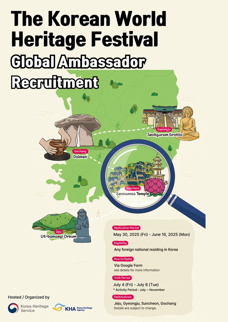 We are now recruiting Global Ambassadors to help promote ‘2025 Korean World Heritage Festival’-the festival that shares the value of Korea’s UNESCO World Heritage sites.