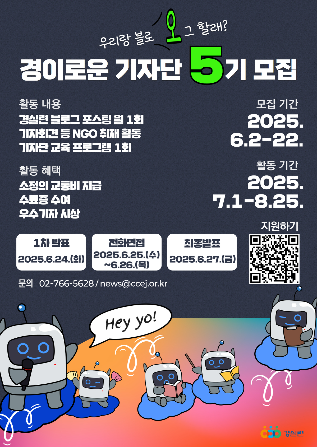 - 활동혜택: 소정의 교통비 지급, 수료증 수여, 우수기자 시상, 교육 프로그램