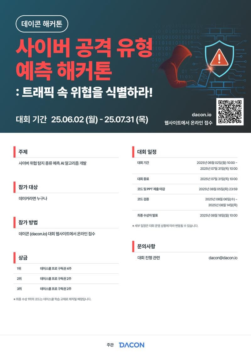 대회 1등부터 3등까지는 수상 인증서(Certification) 발급과 데이스쿨 Pro 구독권