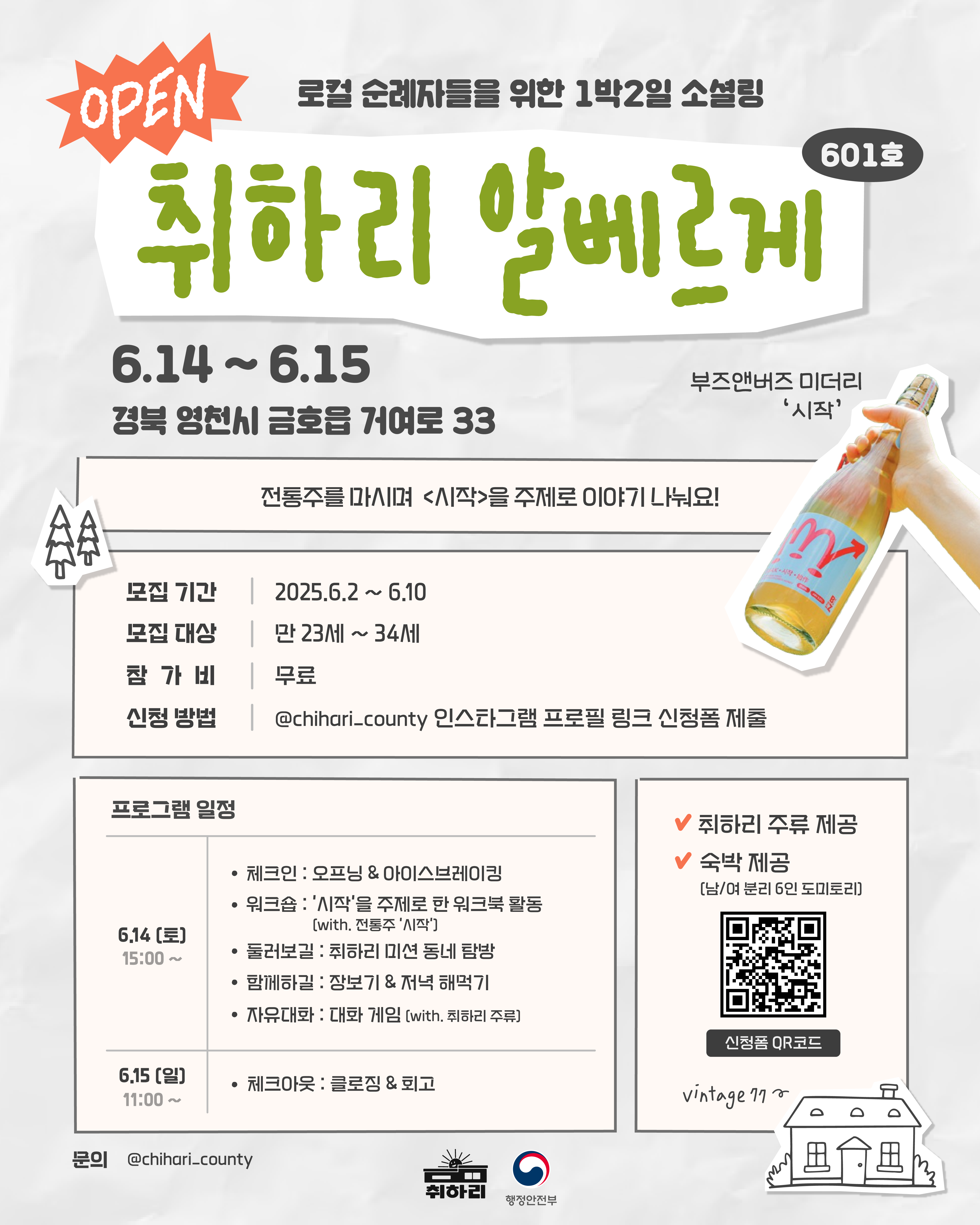 ✅ 신청 방법 : @chihari_county 인스타 프로필 링크 신청 폼 작성