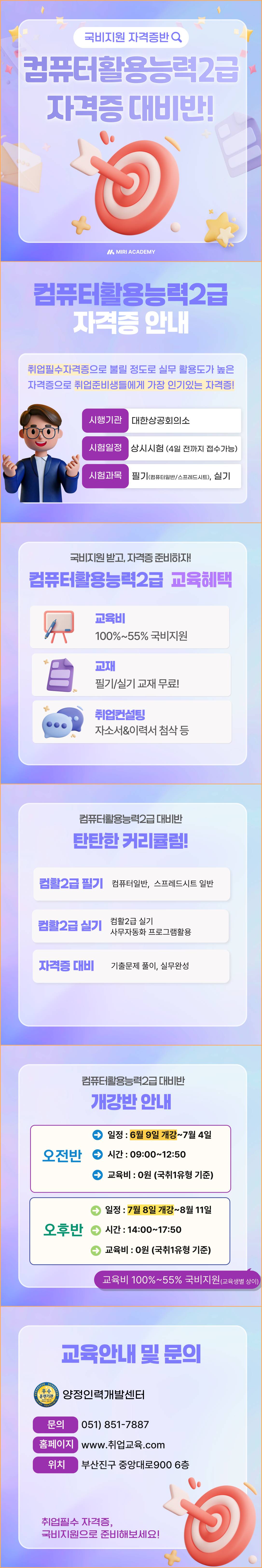 ⭐컴퓨터활용능력2급 국비지원반 혜택⭐