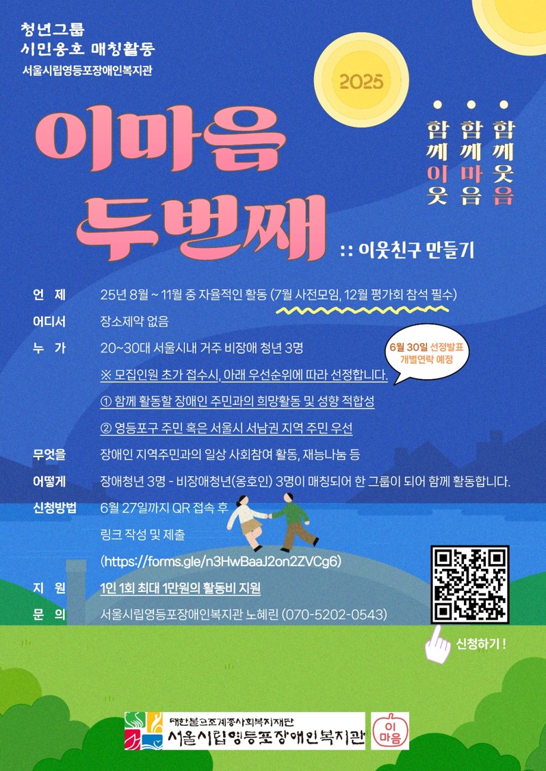 ○ 문의 : 영등포장애인복지관 자립정착팀 노혜린 (070-5202-0543)