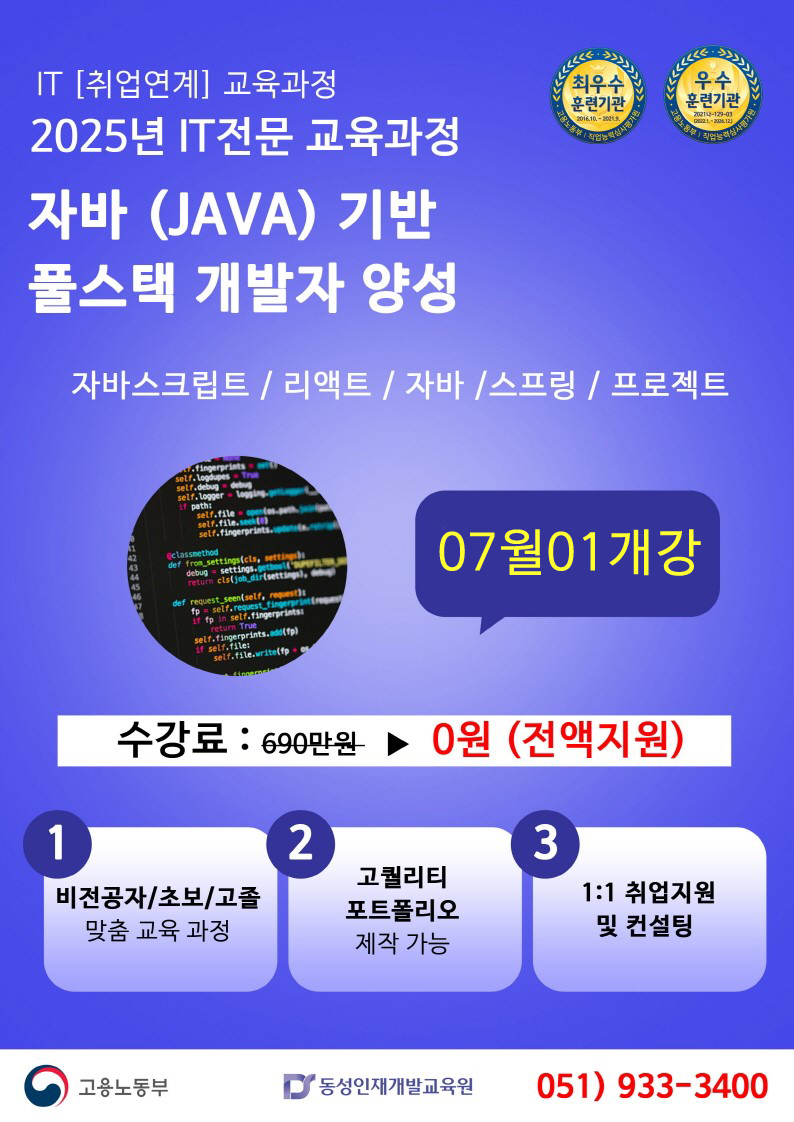 #부산코딩학원 #서면코딩학원 #부산IT학원 #서면IT학원 #부산자바학원 #서면자바학원 # #부산스프링학원 #서면스프링학원 #부산자바스크립트 #서면파이썬학원 #자바학원 #파이썬학원 #IT학원 #부산IT국비학원 #부산국비학원 #서면국비학원 #웹개발자학원 #동성인재개발교육원 #서면동성인재개발교육원 #부산동성인재개발교육원 #부산국비무료