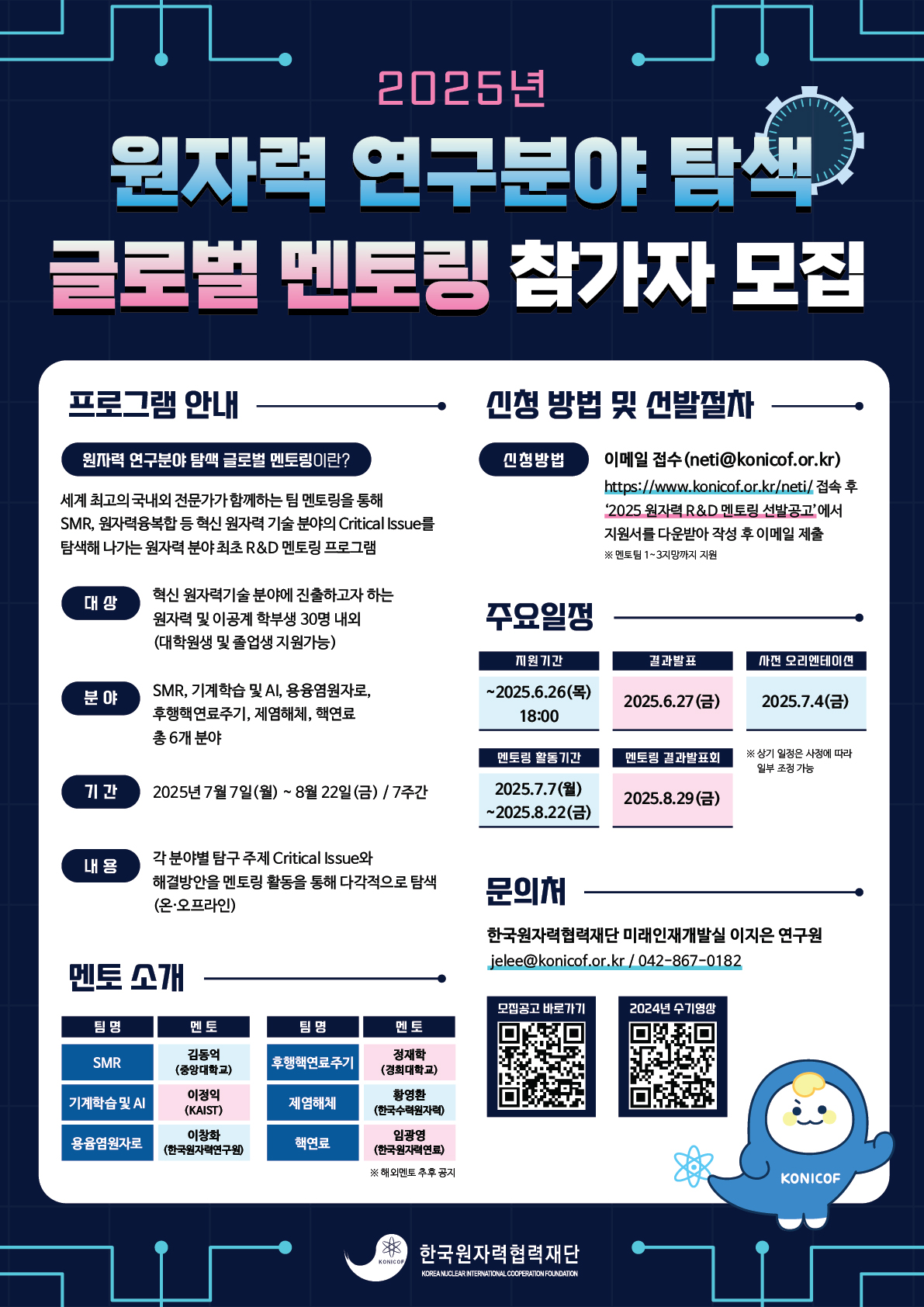 [2025년 원자력 연구분야 탐색 글로벌 멘토링 참가자 선발 공고]