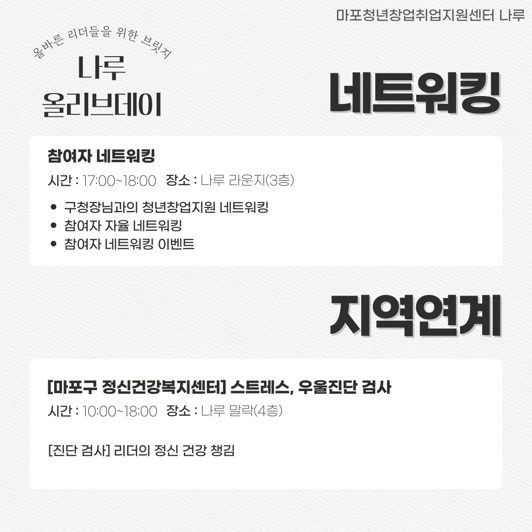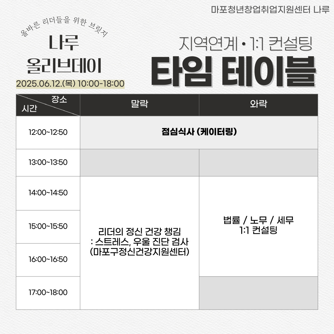 안녕하세요, 마포청년창업취업지원센터 나루입니다.더운 여름의 시작이 느껴지는 요즘, 잘 지내고 계신가요?!