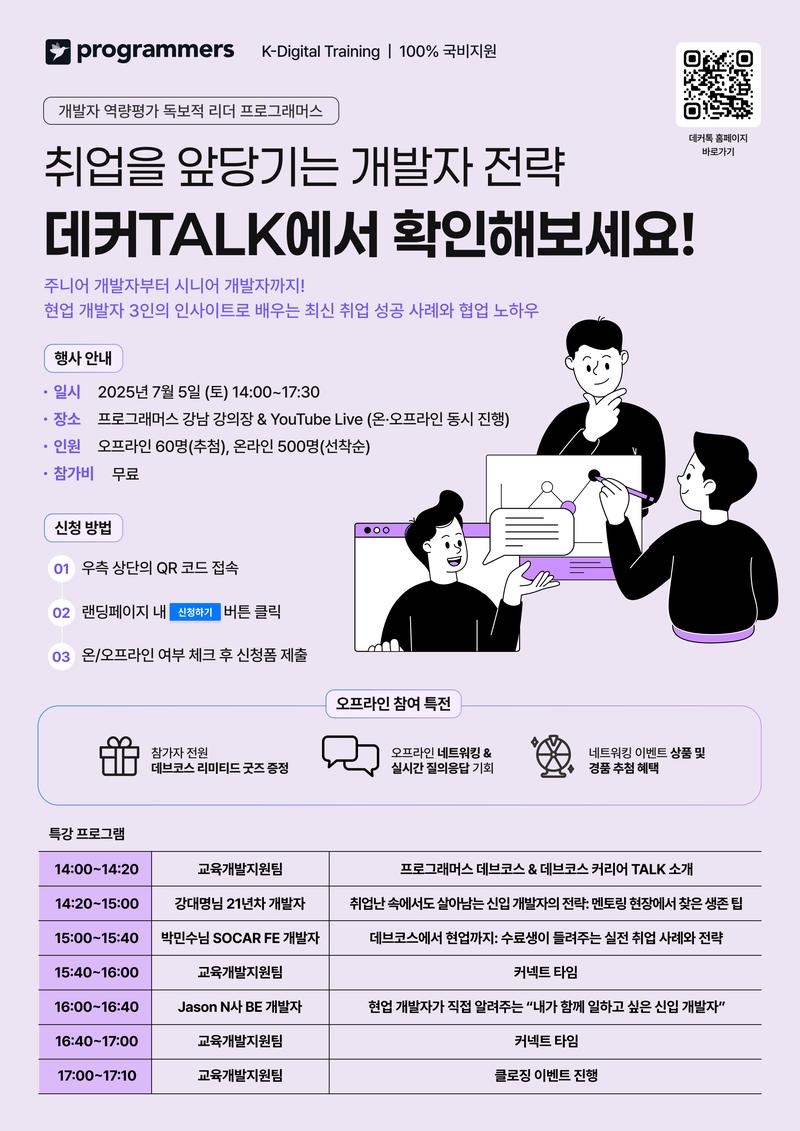 제5회 데브코스 커리어 TALK에서 이런 고민들을 모두 해결해보세요!