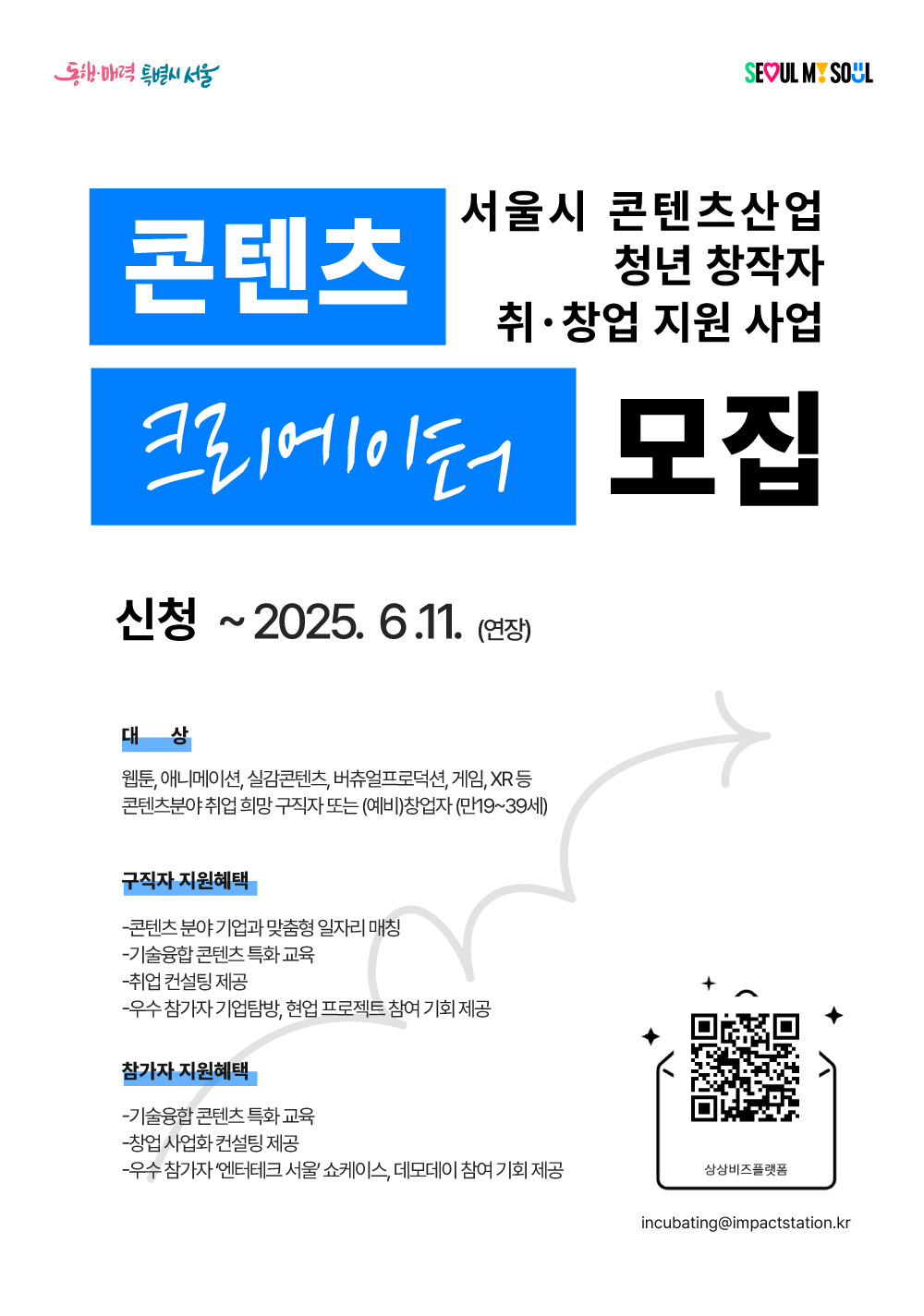 -대상 : 웹툰, 애니메이션, 실감콘텐츠, 버츄얼프로덕션, 게임, XR 등 콘텐츠분야 취업 희망 구직자 또는 (예비)창업자 (만19~39세)