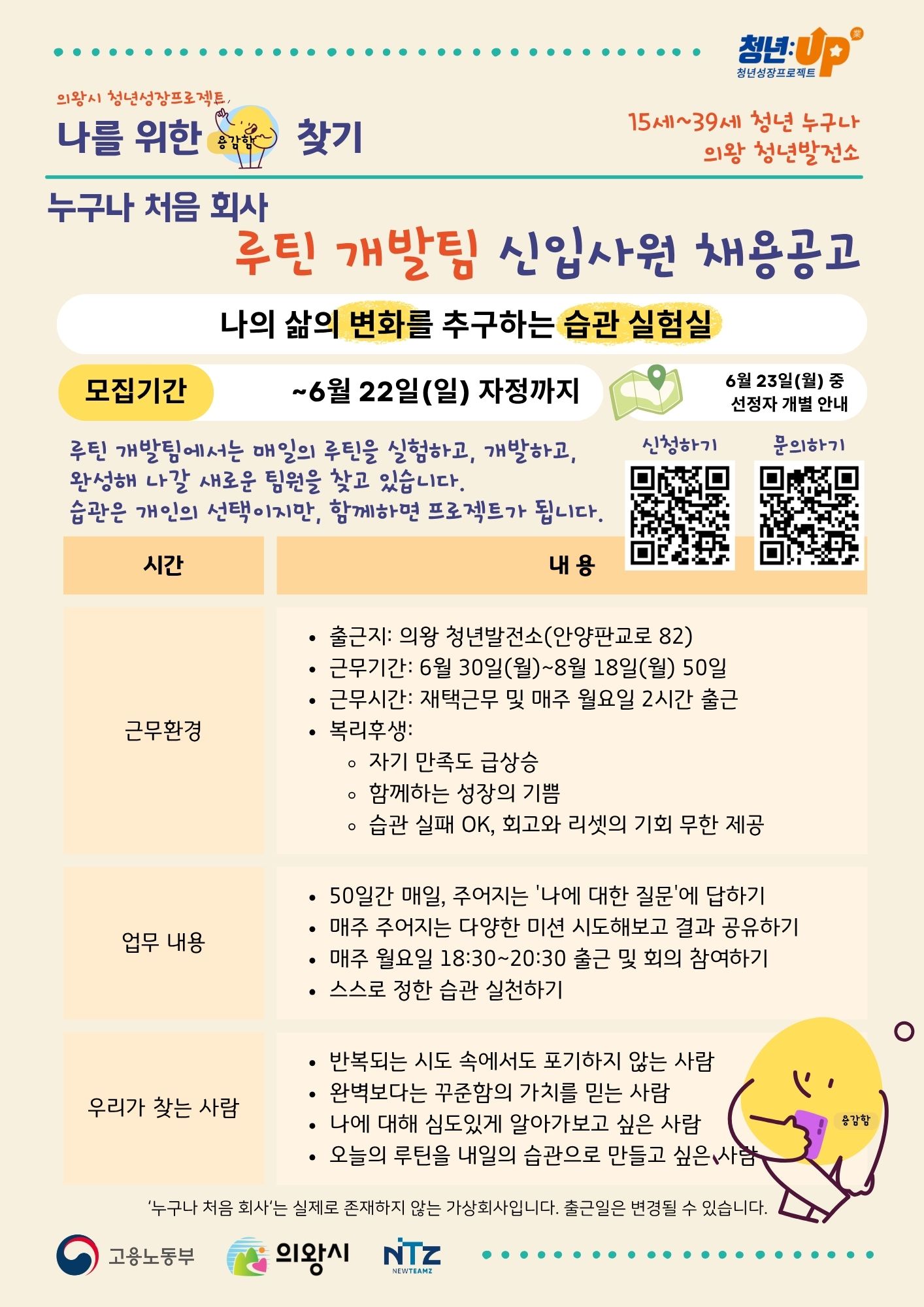 루틴 개발 부서에서는 매일의 루틴을 실험하고, 개발하고, 완성해 나갈 새로운 팀원을 찾고 있습니다.