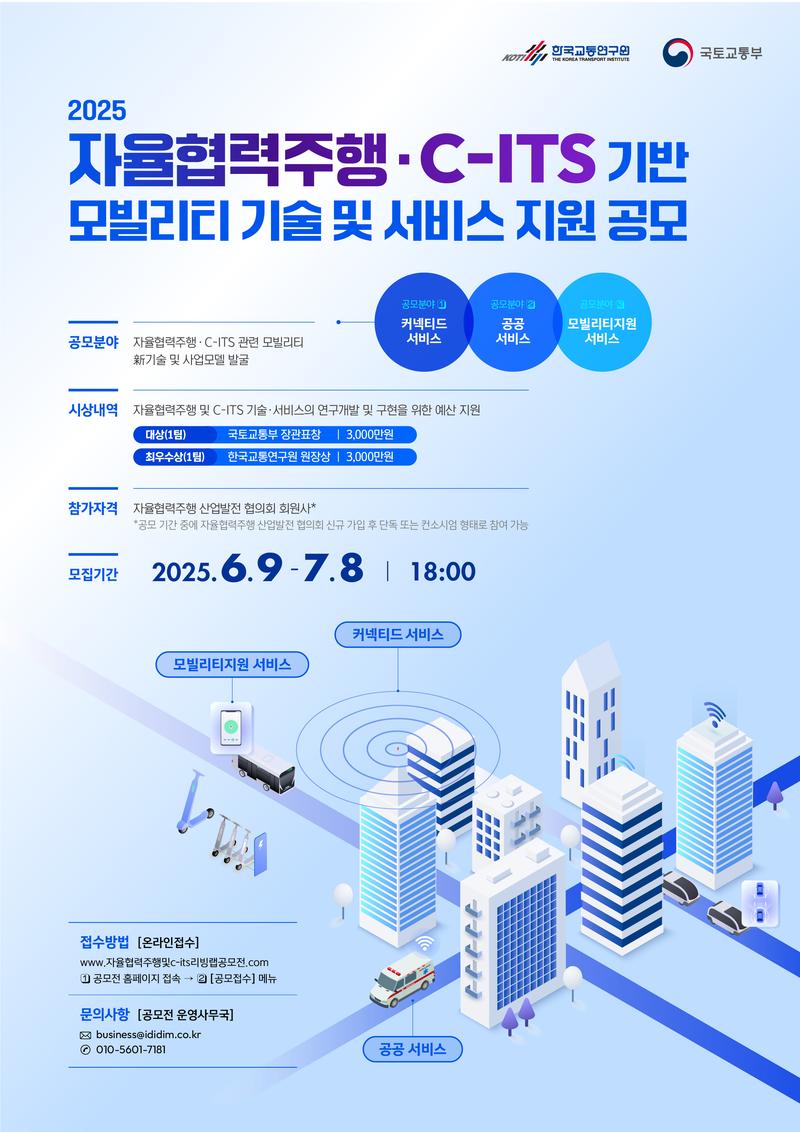● 공모명 : 2025 자율협력주행·C-ITS 기반 모빌리티 기술 및 서비스 지원 공모