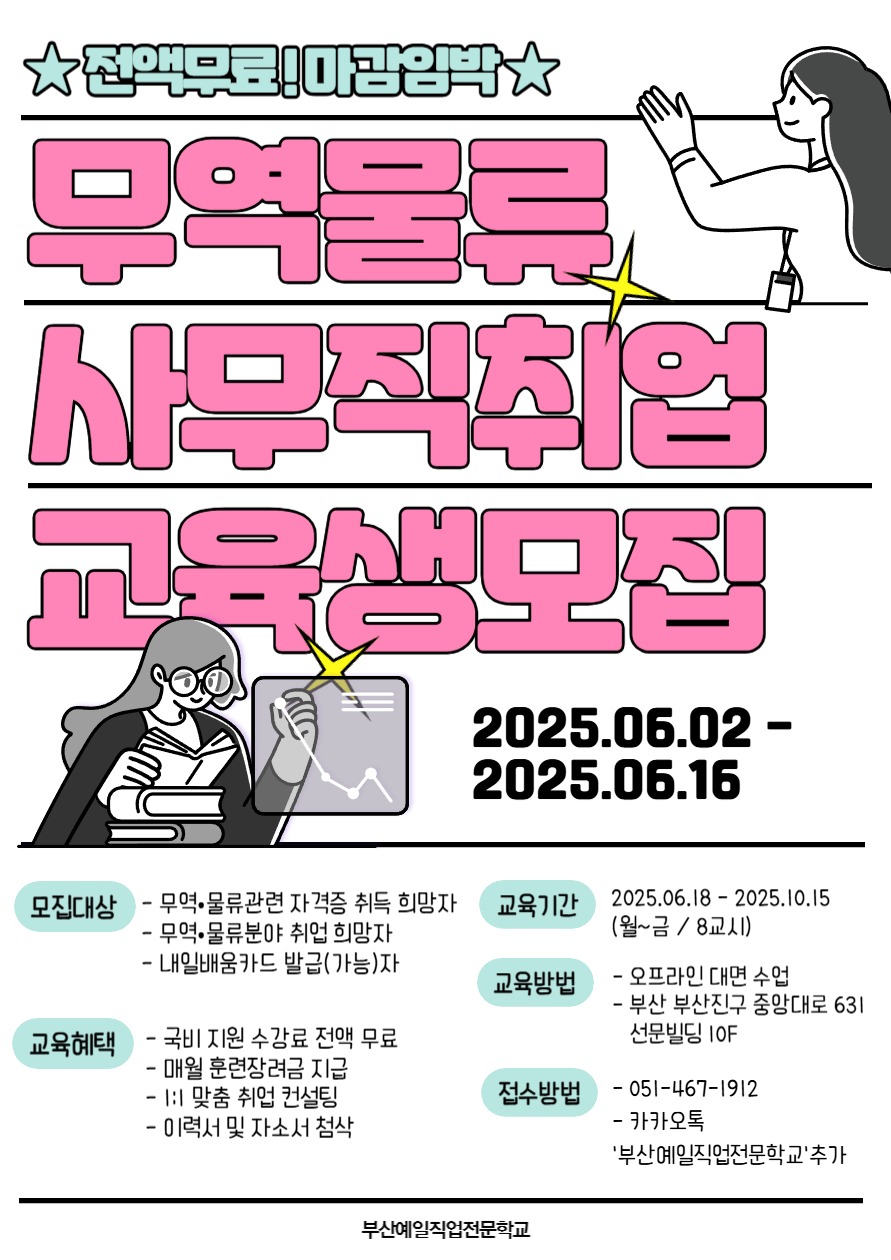 무역물류 분야 사무직 취업 희망하시는 분들을 위해 이론 수업부터 실무 능력까지 쌓을 수 있는 교육입니다.