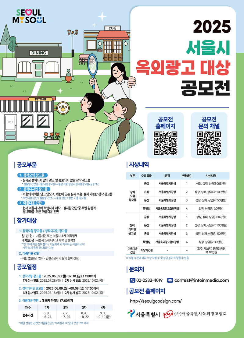 - 특별상(4팀) : 상장,상금(각30만원) / 서울옥외광고협회장상