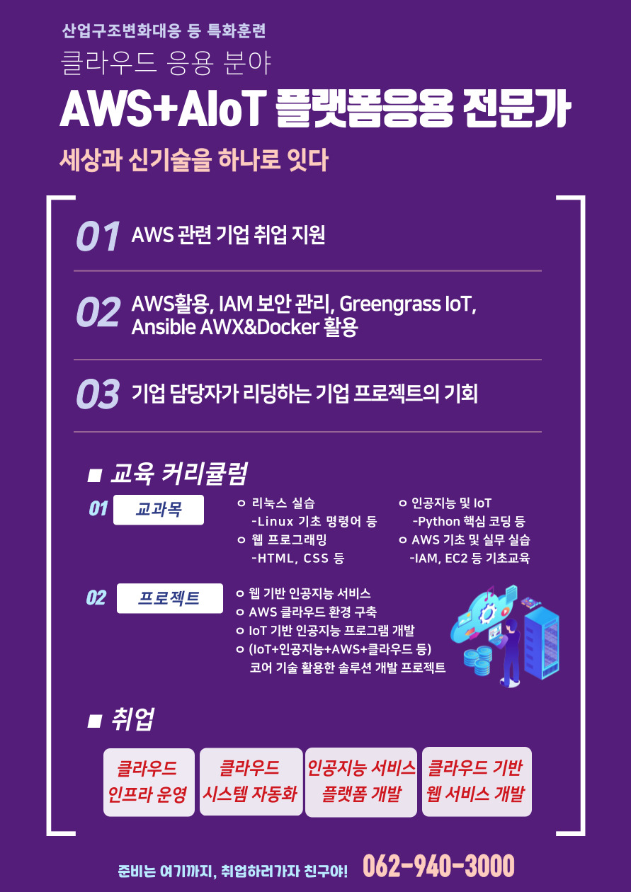 [대한상공회의소 광주인력개발원 ‘AWS+AIoT 플랫폼 응용전문가’ 소개 페이지]