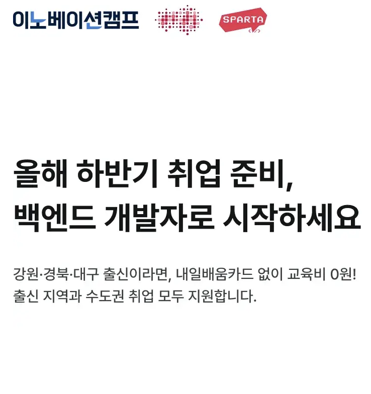 상위 1% 지역 대표 IT 인재 양성을 위한 개발자 취업 특화 교육 ‘이노베이션캠프’와 함께 시작하세요.