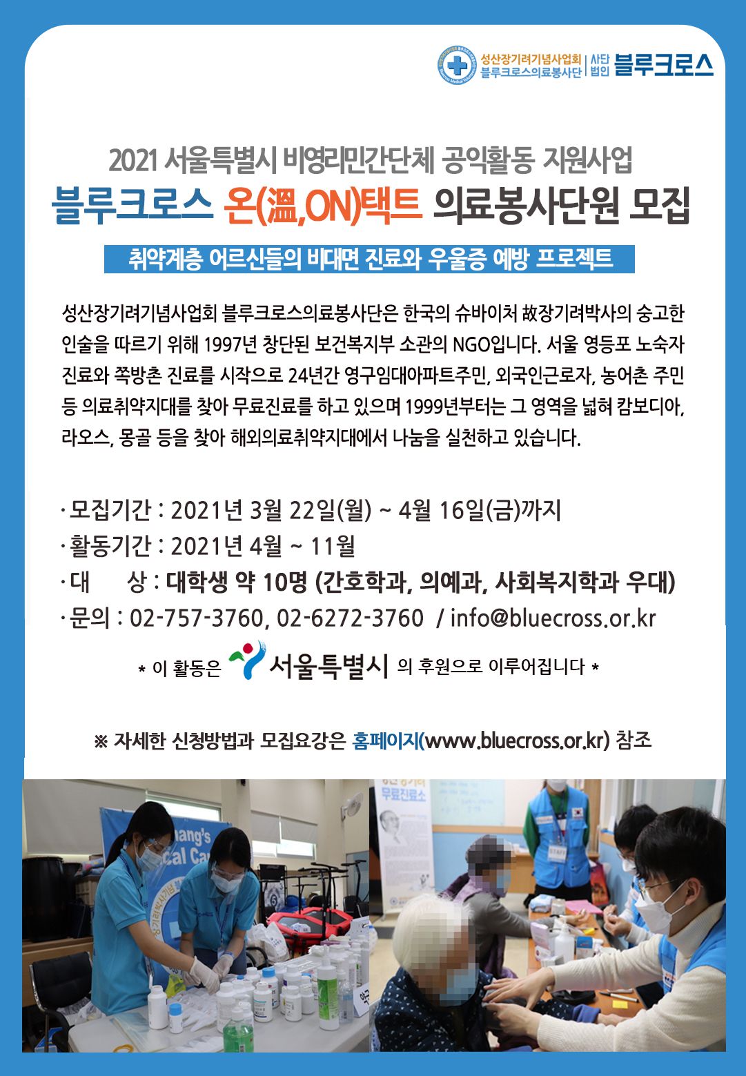 '2021 블루크로스 온(溫,ON)택트 의료봉사단'★봉사 단원 모집★