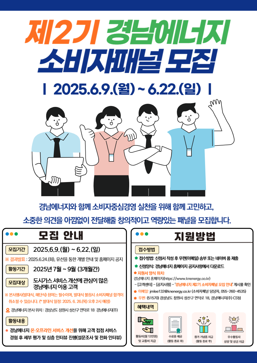 ■ 모집문의 : 소비자패널 담당자(055-260-4535, jmlee132@knenergy.co.kr)