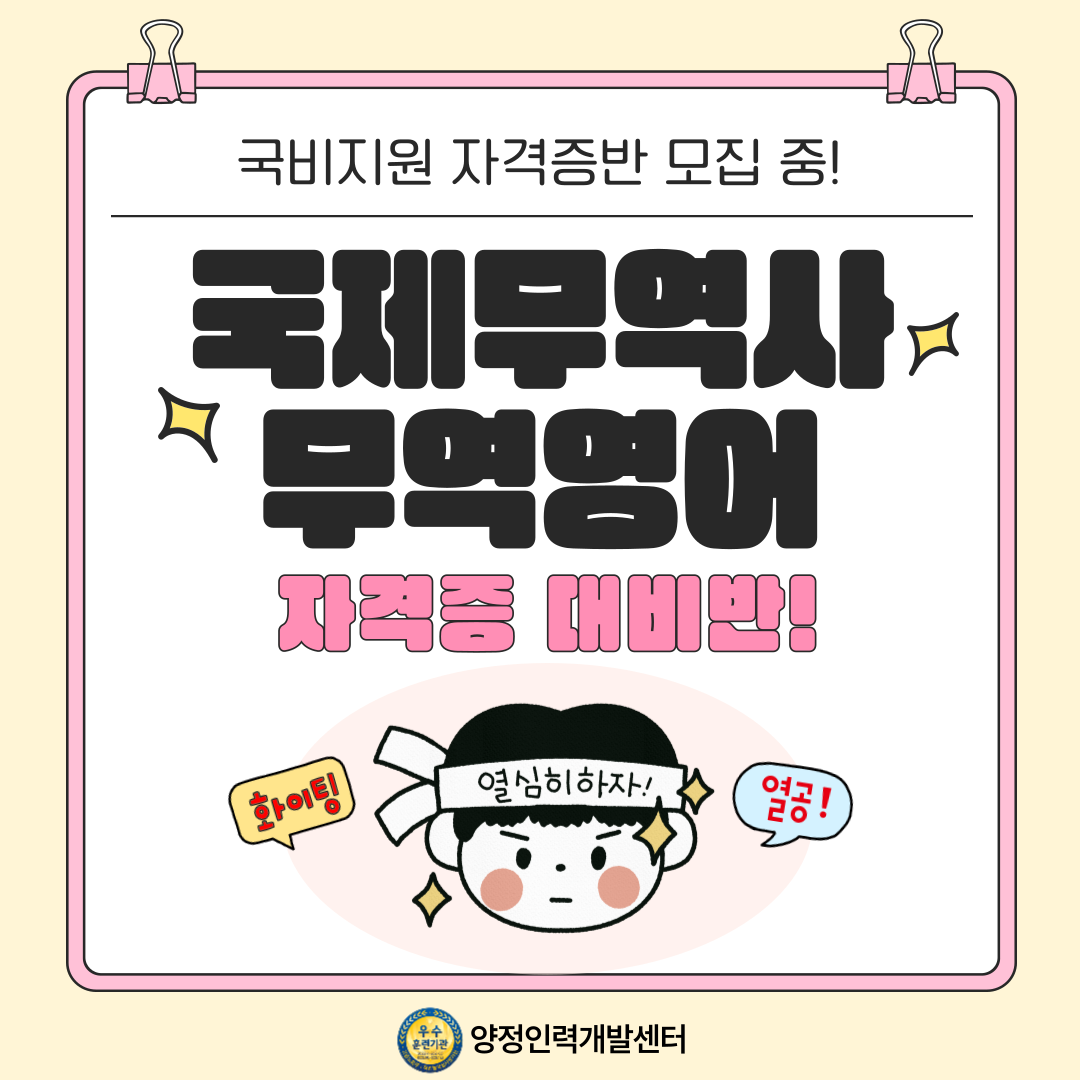 양정인력개발센터에서 국비지원으로 자격증을 준비할 수 있습니다.
