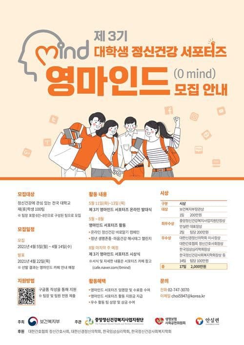 제 3기 대학생 정신건강 서포터즈 영마인드(0mind) 모집