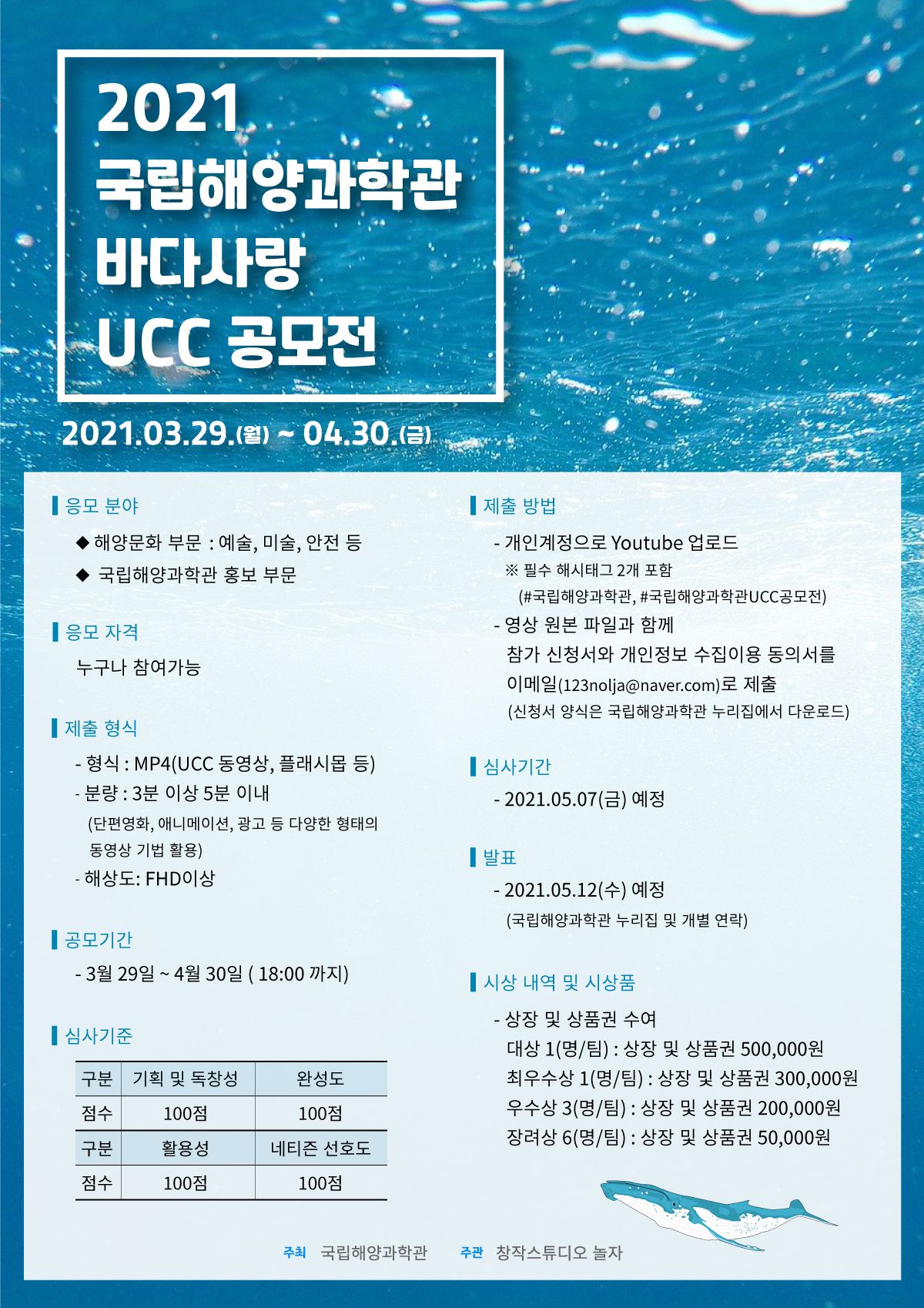 2021 국립해양과학관 바다사랑 UCC공모전 이 개최되었습니다.
