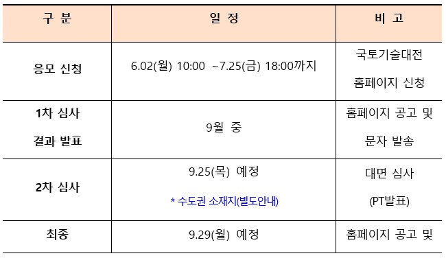 - LH 국토기술대전 홈페이지를 통해 참가신청