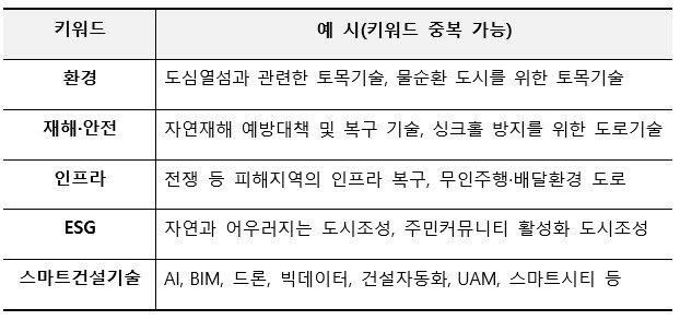 ■ 공모주제 : LH 국토·도시분야 사업에 적용할 수 있는 기술