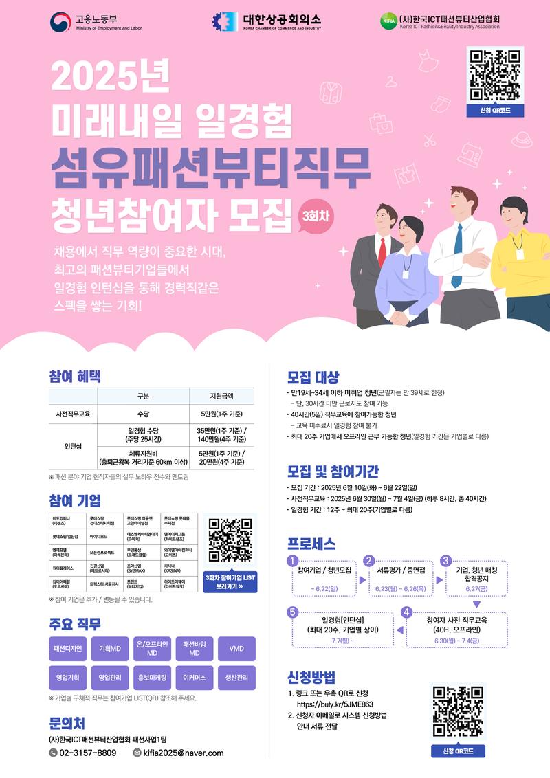 2025년 미래내일 일경험 섬유패션뷰티직무 청년참여자를 모집합니다.