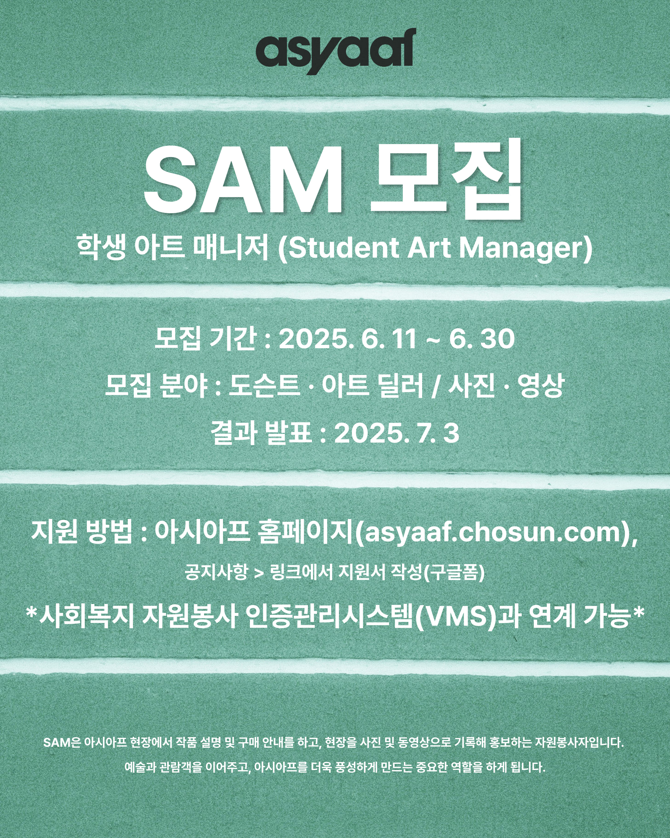 2025 아시아프 SAM(Student Art Manager 학생 아트 매니저) 18기를 모집합니다.