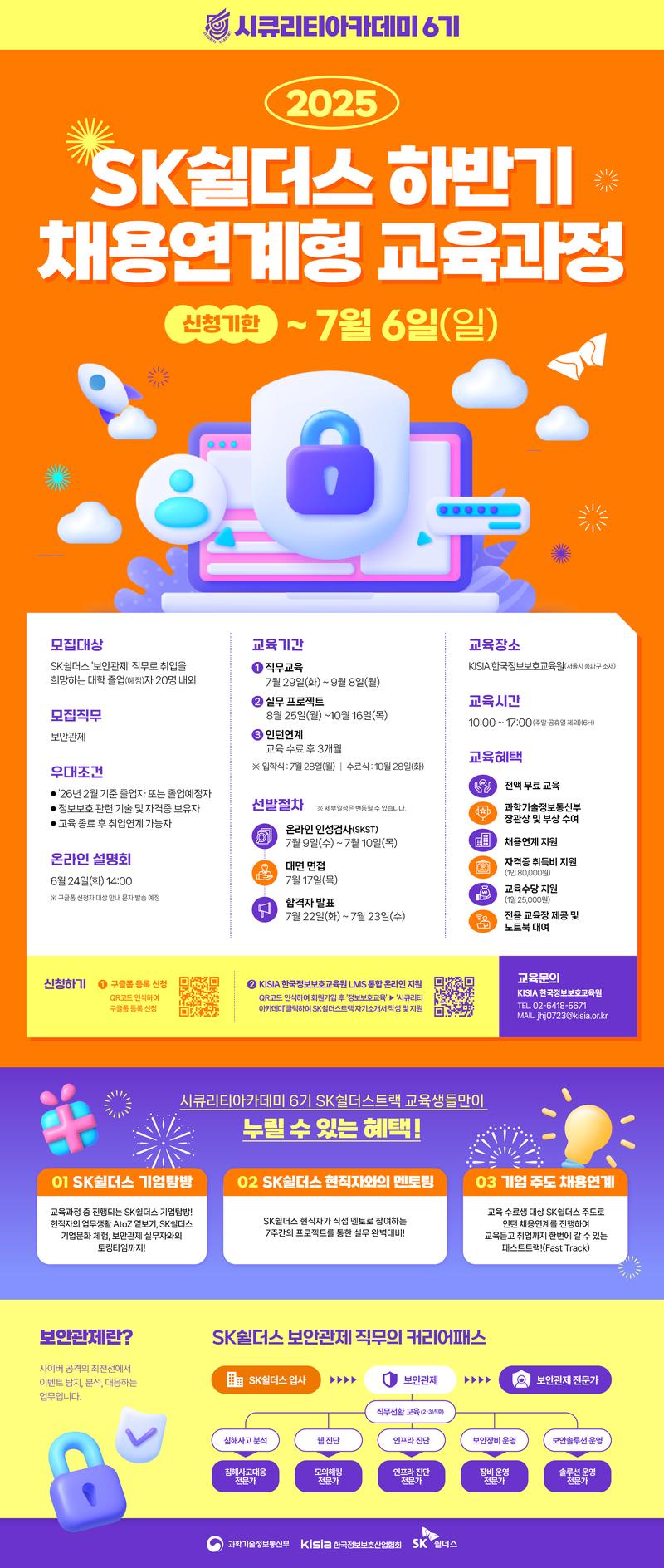 📢시큐리티아카데미 6기 SK쉴더스트랙 교육생 모집(~7/6)