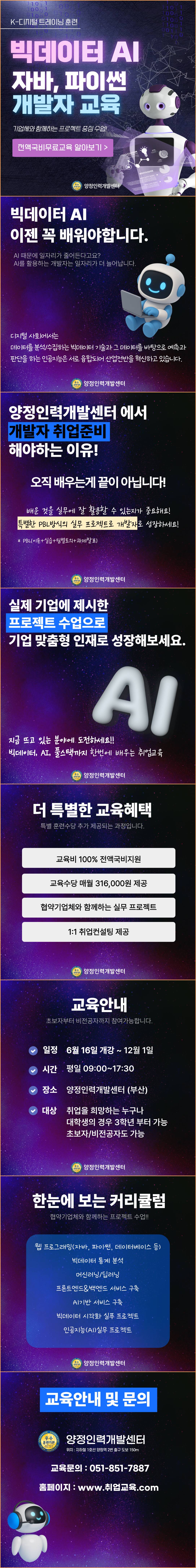 ✔️교육명 : 빅데이터, AI활용 자바, 파이썬 풀스택 개발자 양성