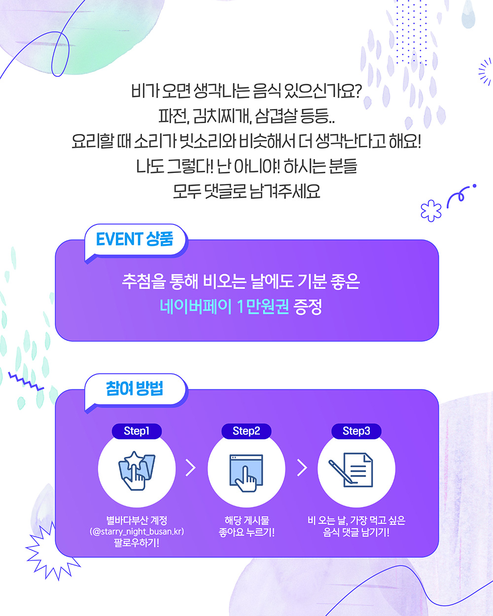 3) 비 오는 날, 가장 먹고 싶은 음식 댓글 남기기!💬