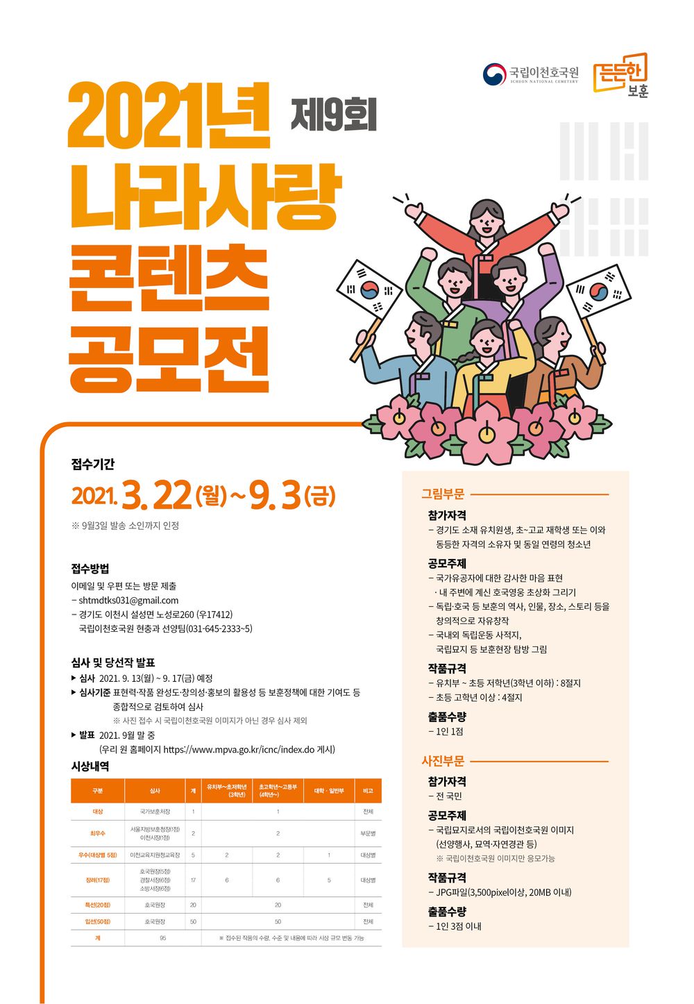 - 특선(20명), 입선(50명) : 이천호국원장상