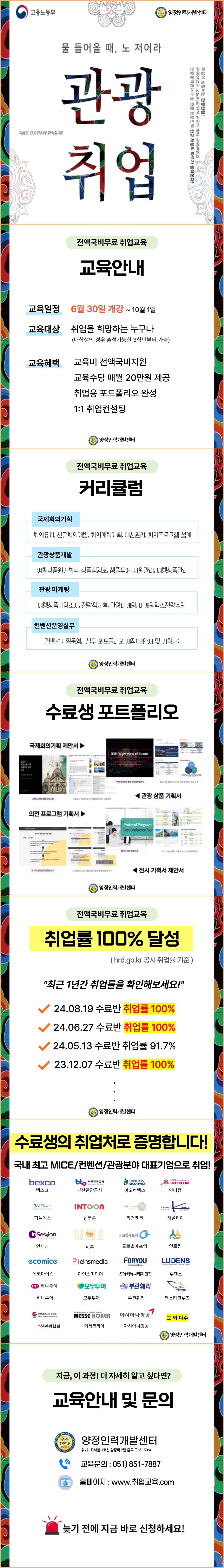 - 관광마케팅/국제회의·컨벤션/여행상품개발 등 실무+취업용 포트폴리오 제작!
