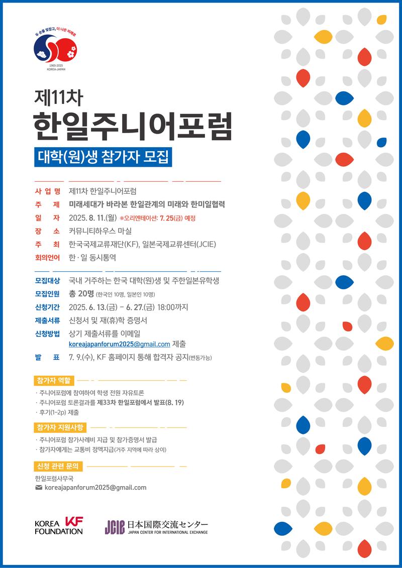 📢[제11차 한일주니어포럼] 대학(원)생 참가자 모집