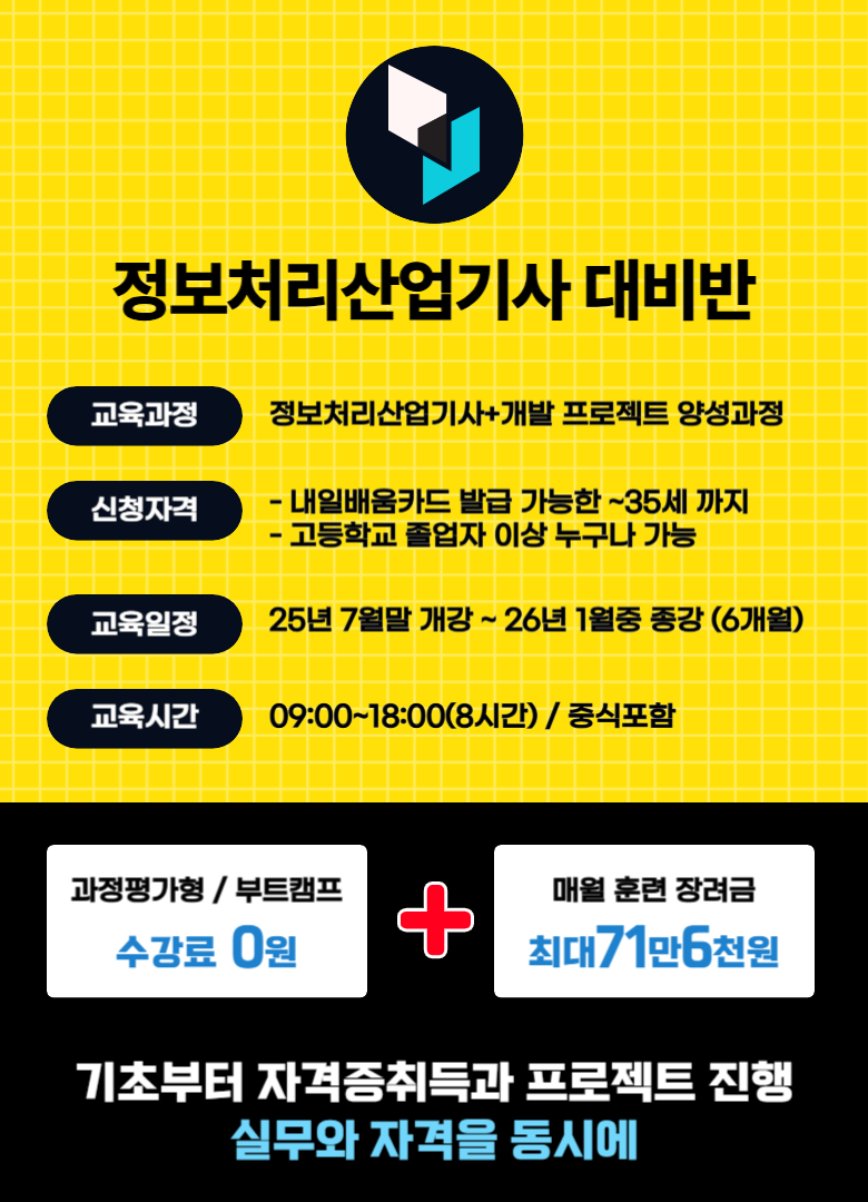 서울 신림 정보처리산업기사 과정평가형 국비지원 학원 자격증 무료교육