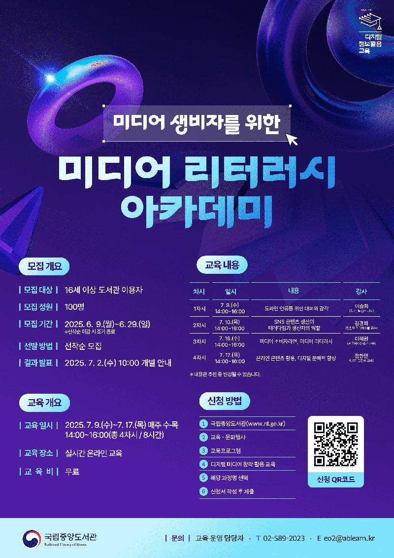 ㅇ 교육일시: 2025. 7. 9.(수)~7. 17.(목) 매주 수목 14:00~16:00 (총 4차시 / 8시간)