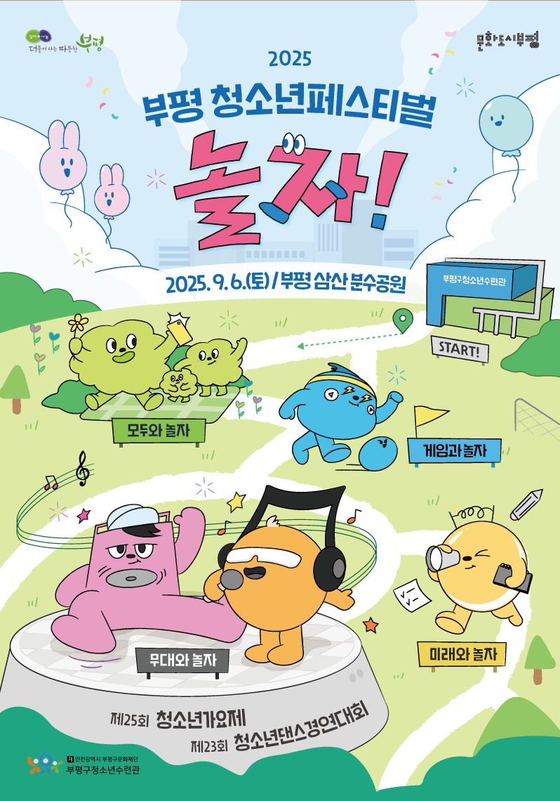 ※ 2차 예선 일정: 가요제 8. 3.(일), 댄스경연대회 8. 10.(일) / 부평구청소년수련관 공연장 예정