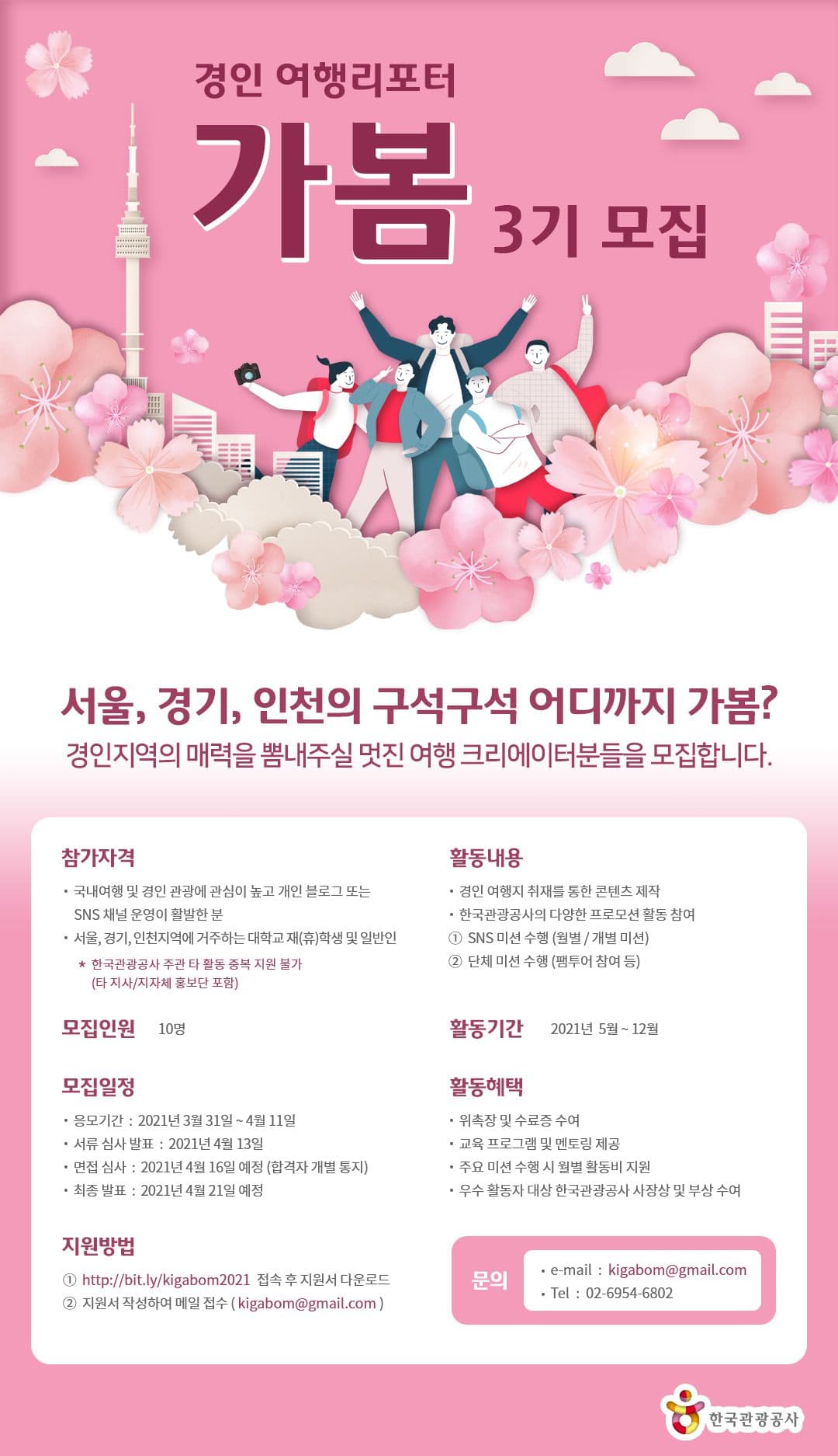 2021 한국관광공사 경인지사 여행리포터 가봄 3기 모집