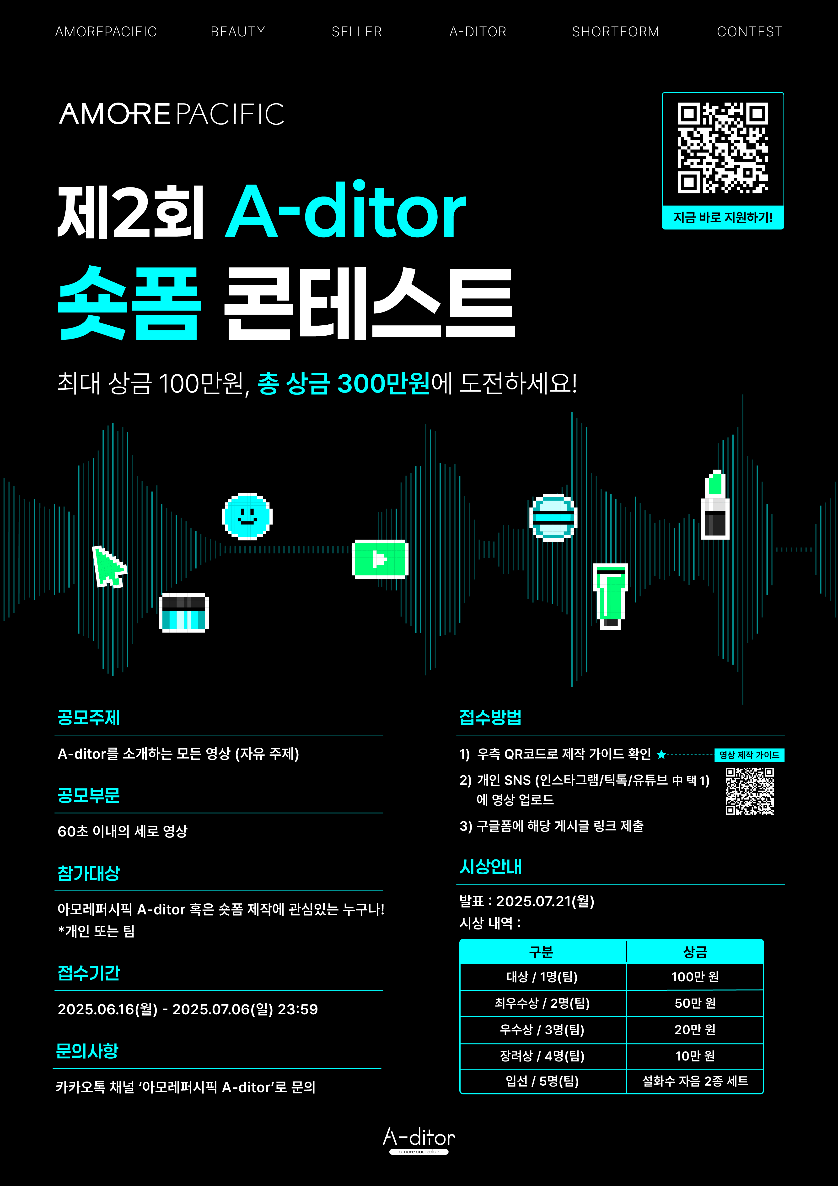 - 아모레퍼시픽 A-ditor 혹은 숏폼 제작에 관심있는 누구나!