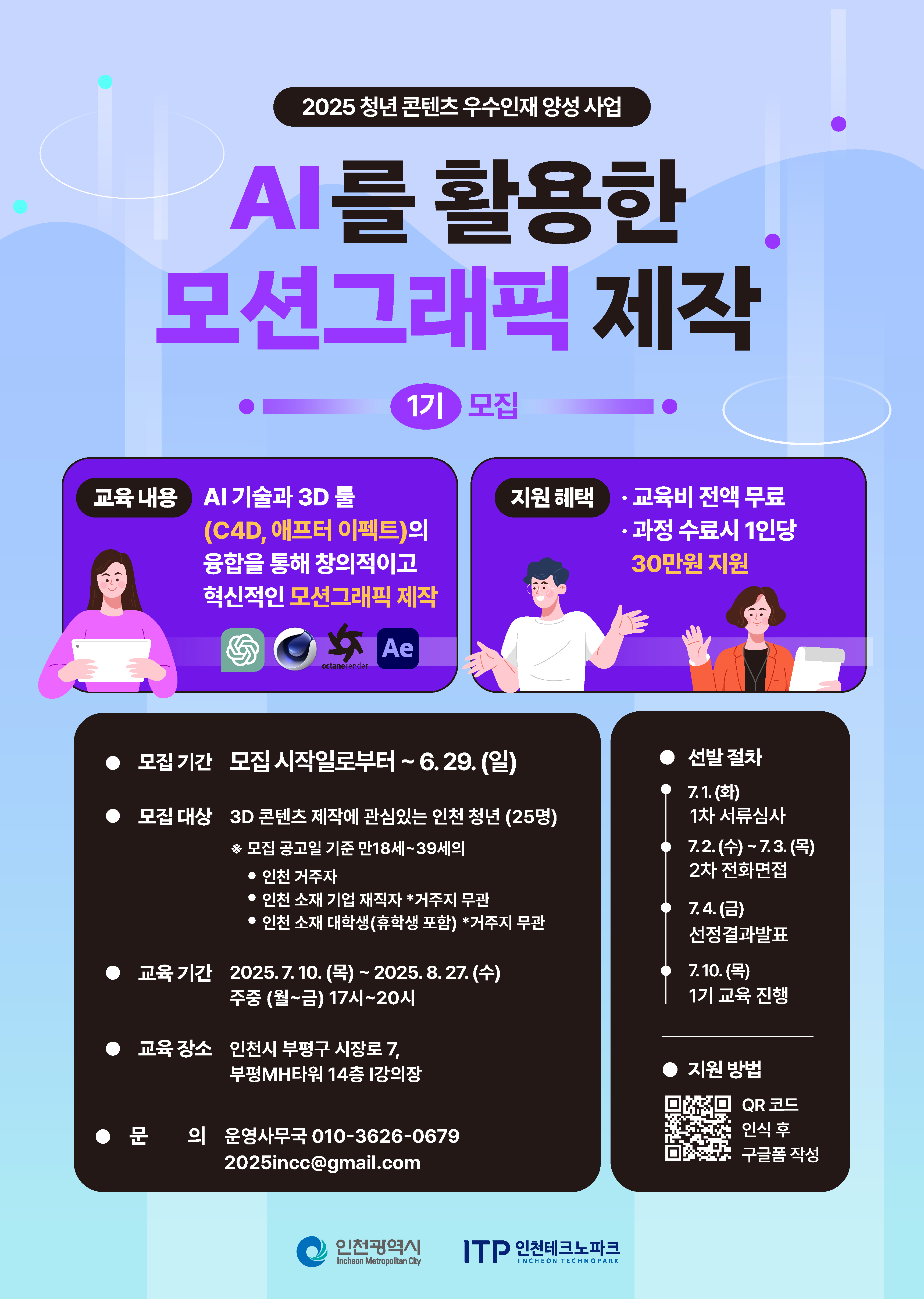 인천광역시와 인천테크노파크에서 2025 청년 콘텐츠 우수인재 양성 사업으로 진행하는