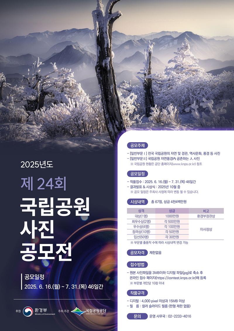 ∘최종 수상자에 한해 향후『제24회 국립공원 사진 작품집』을 제작하여 개별 발송할 예정입니다.