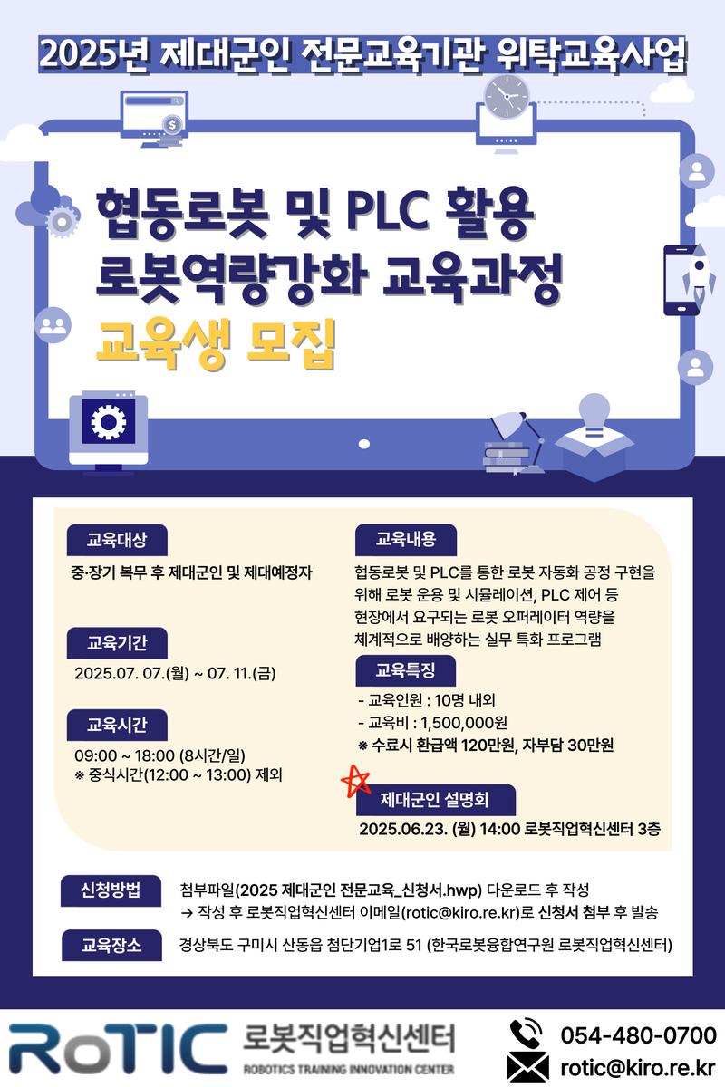 - 로봇직업혁신센터 (TEL:054-480-0700, E-Mail : rotic@kiro.re.kr)