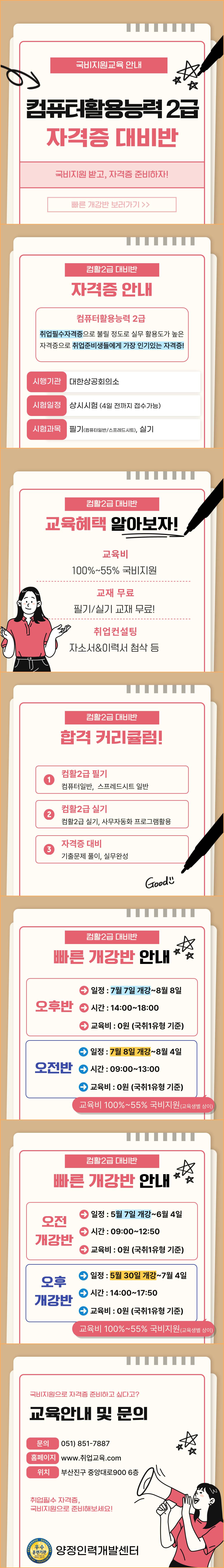 ⭐컴퓨터활용능력2급 국비지원반 혜택⭐