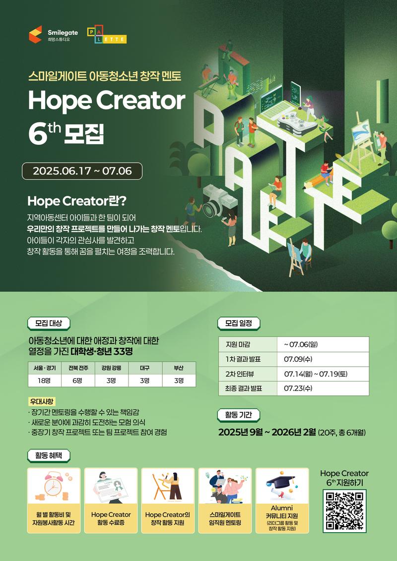 스마일게이트 아동청소년 창작 멘토 Hope Creator 6기 모집
