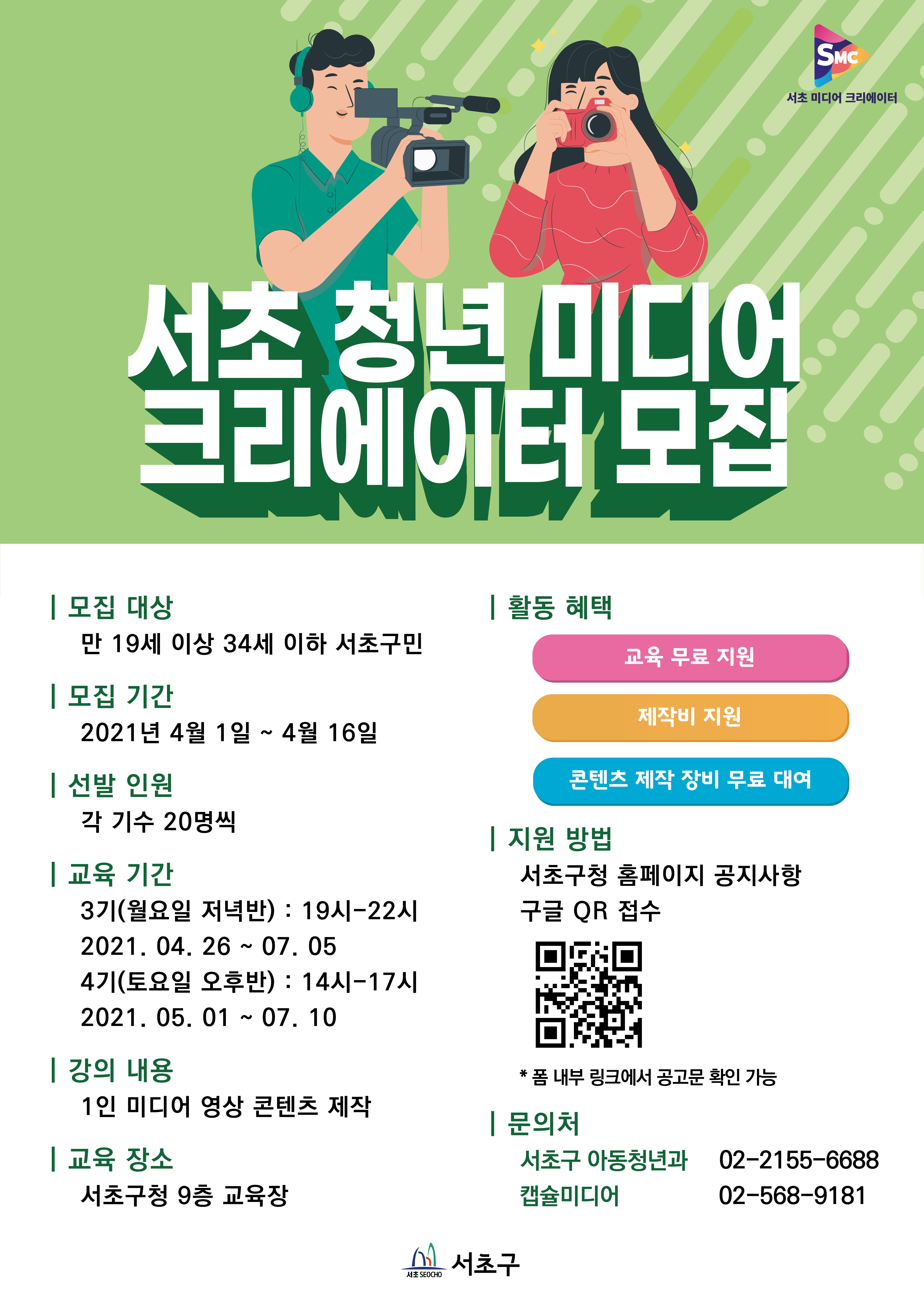 - 영상콘텐츠 제작에 관심 있는 서초구 청년 (만 19세 이상 34세 이하)