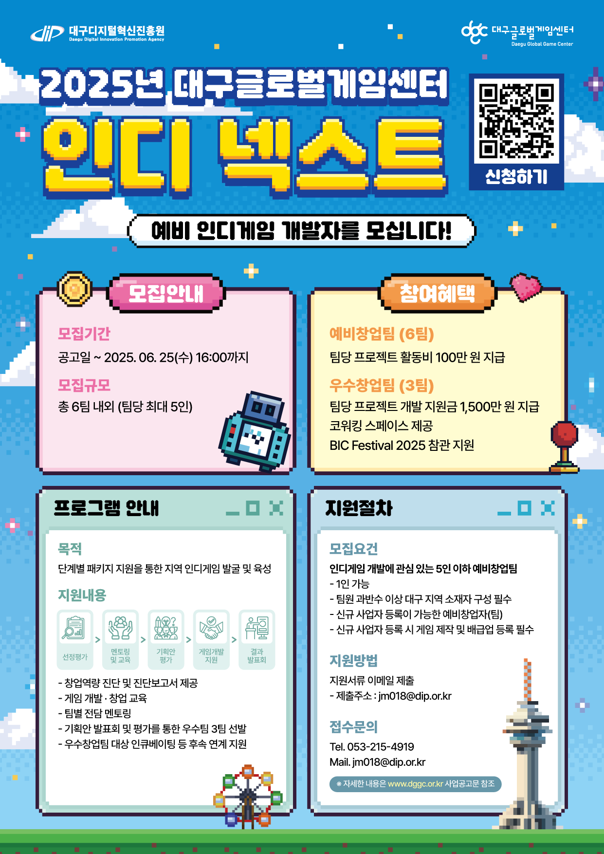 - 인디게임 개발에 관심 있는 5인 이하 예비 창업팀