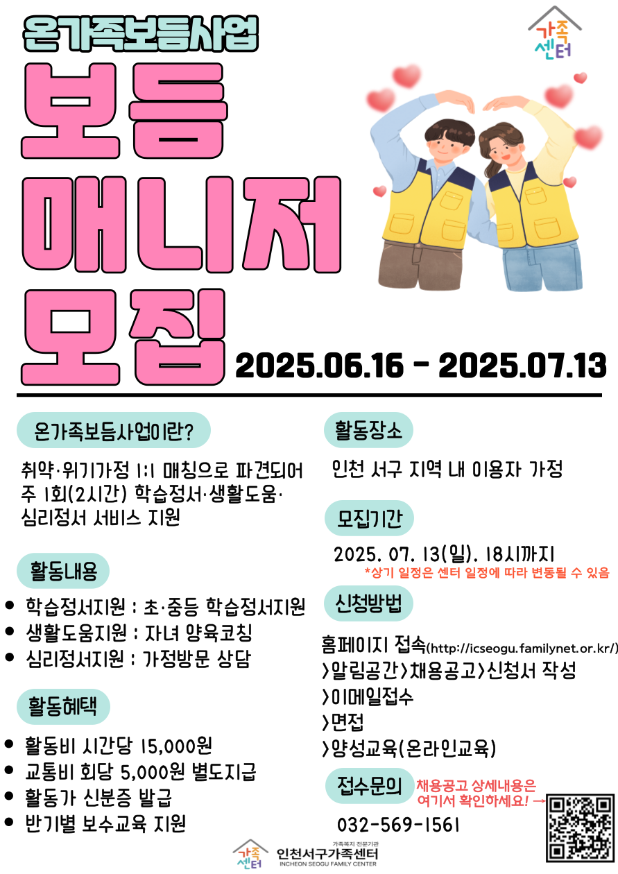2025년 온가족보듬사업 보듬매니저 모집 공고(~7/13)
