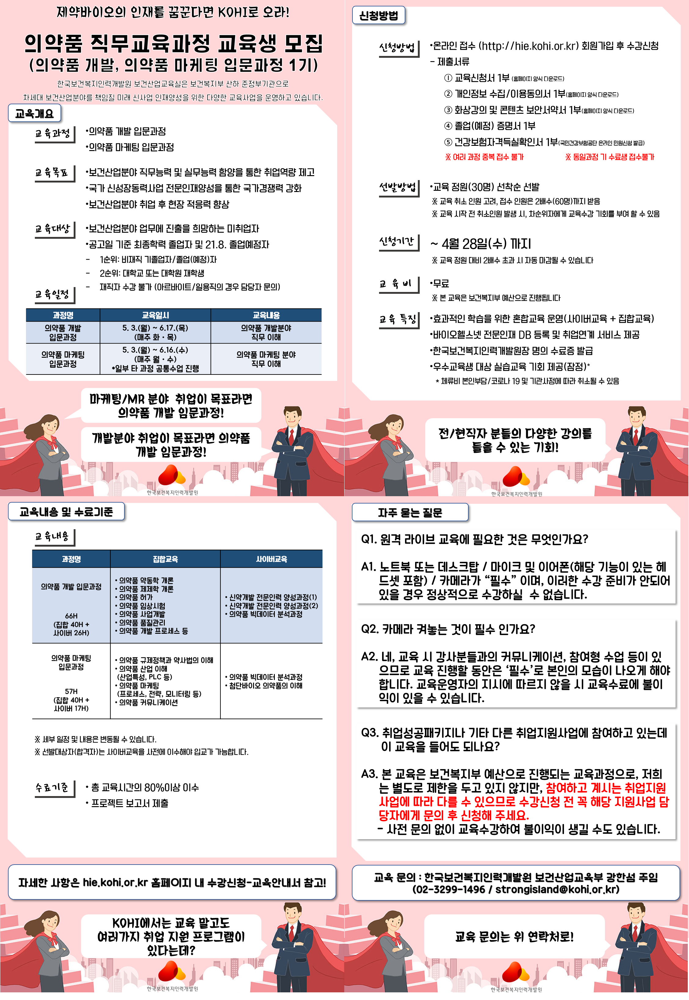 한국보건복지인력개발원에서 제약바이오산업 분야 취업준비생들을 위한 직무 교육과정 교육생을 모집합니다!