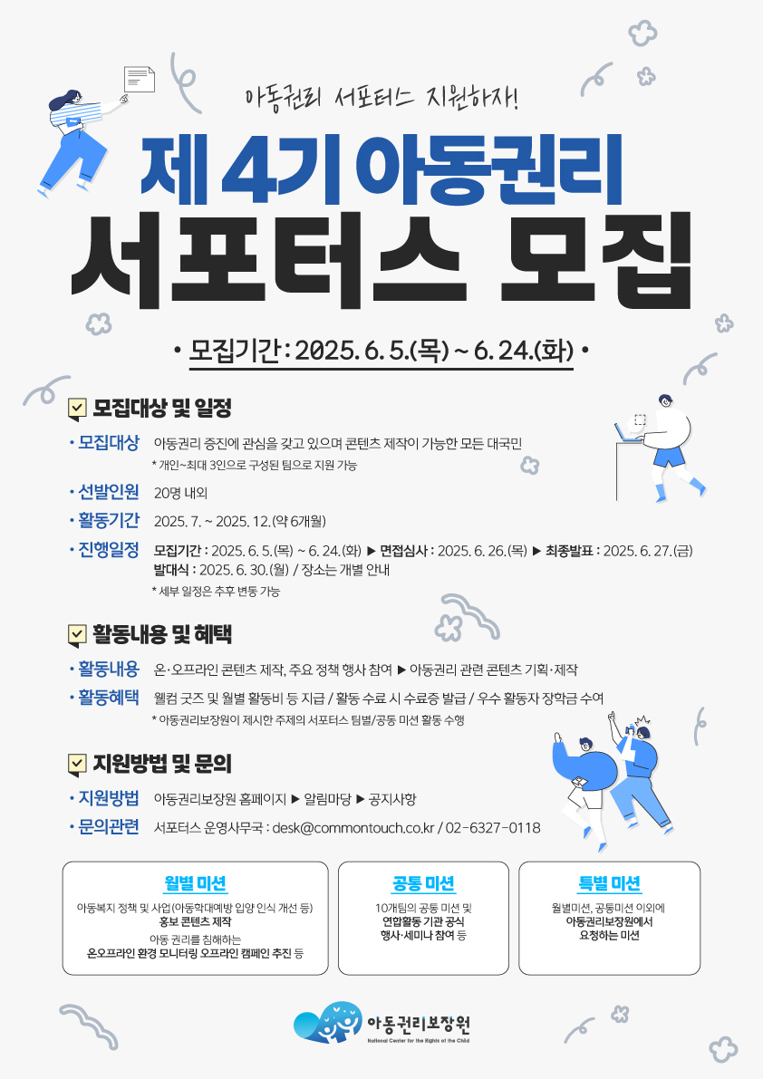 제4기 아동권리 서포터스를 다음과 같이 모집합니다.