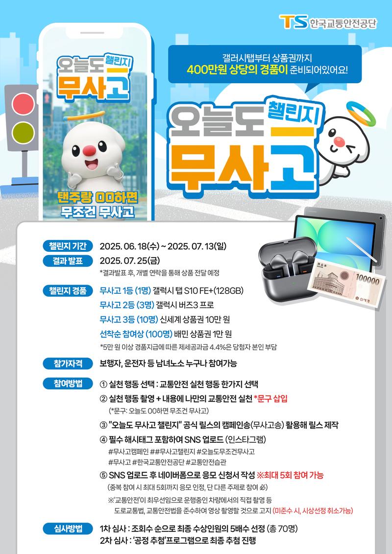‘오늘도 무사고 챌린지’에 참여해 나만의 교통안전 행동을 릴스로 공유해보세요 💕