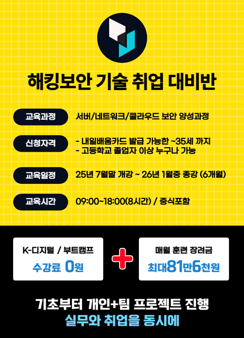 서울 신림 화이트해커 해킹 보안 국비지원 부트캠프 학원 취업연계 교육